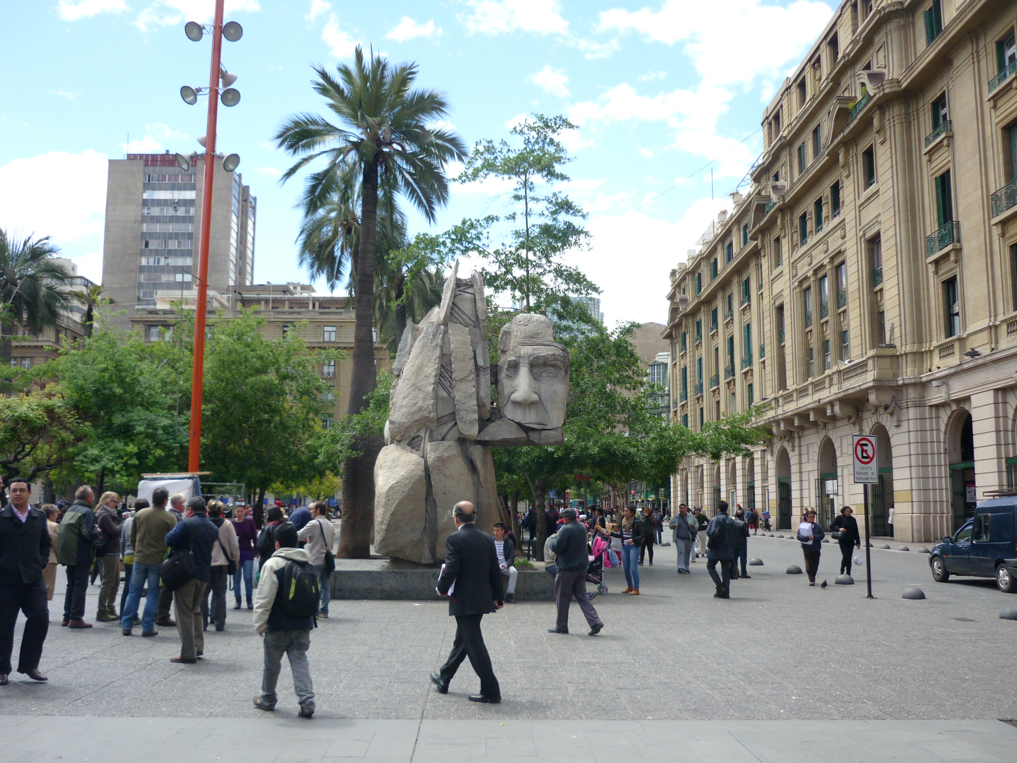 The centre of Santiago is not very interesting. We travelled into town on the Metro, which like the airport is smart and modern, from Los Domingos. The oldest square and the centre for the city’s grid is Plaza de Armas. There is little to see except some interesting statues (*) and the Metropolitan Cathedral. Chile has not yet understood coffee and we are over-charged for some very thin dregs topped by a splurt of cream at a cafe on the square. We strolled around the area and visited Cerro Santa Lucia. There is a park around the hill and a small fort at the top. We are approached by a couple of girls on the walk there, who asked for money to help them pay their university fees which aren’t subsidised in Chile. More than likely panhandling but for the small sums involved it seems better to err on the charitable side.
