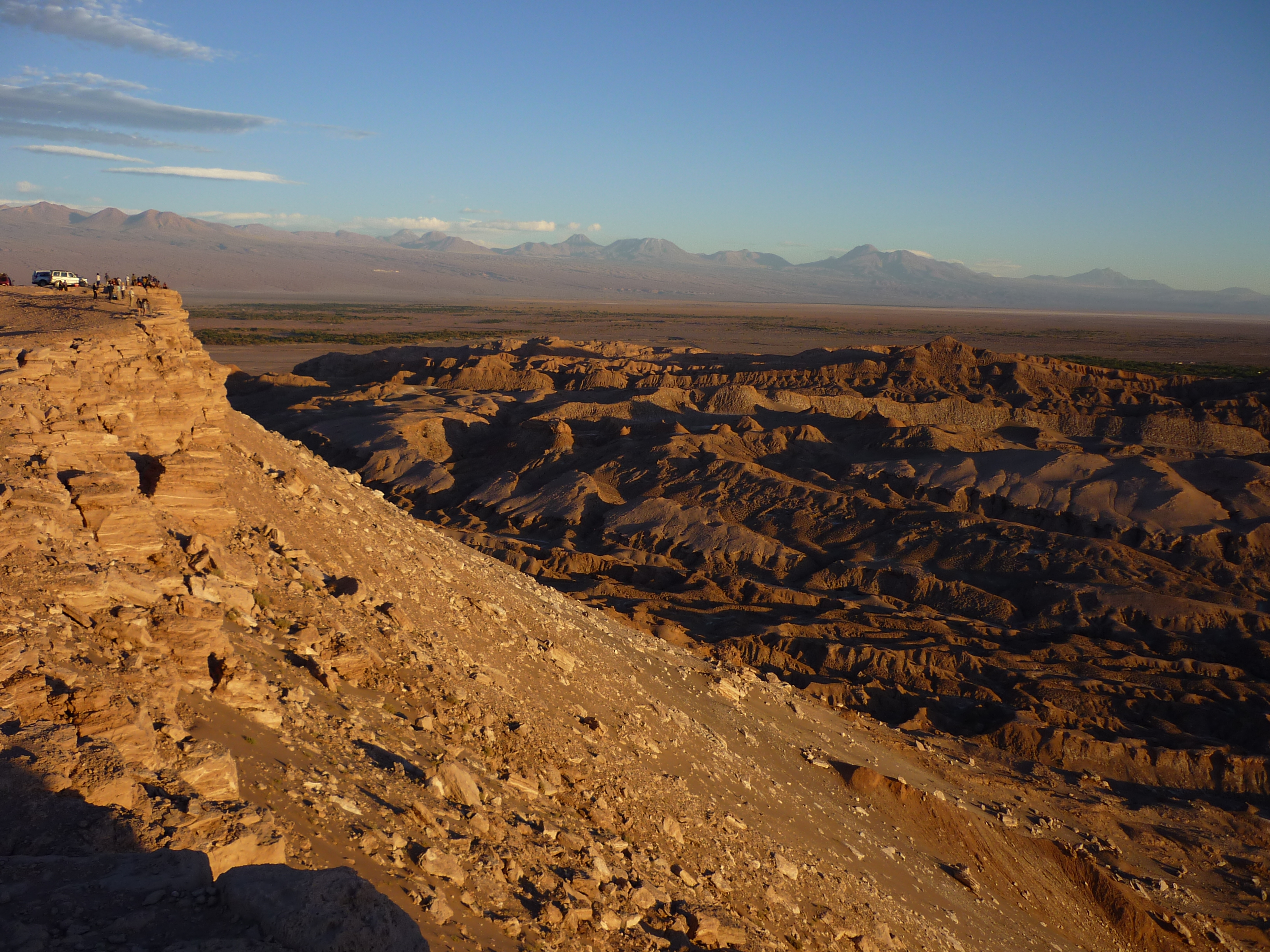 After a brief stop at another typical village called Toconao, we are back in San Pedro by two o’clock in the afternoon after a seven hour trip. After a brief rest, we are picked up for our next excursion. Our first stop is at the two pools Laguna Piedra and Laguna Cejar. It is possible to swim in the pools, or rather, to lie in them on your back, Dead Sea style. The water is caustic and not for the fair skinned. A little further on there is another set of circular pools which are not so alkaline. Then it is back to Laguna Piedra to watch the sunset. The tour company, Inca Coya (*), has laid on Pisco sours and peanuts while the sun sets. Back in San Pedro, supper is take away pizza again.